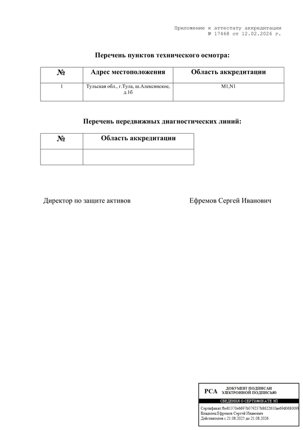 Область аккредитации: M1, N1